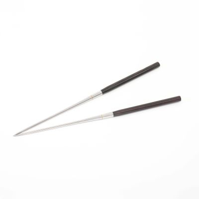 Combinan un mango de madera de ébano, firme y cómodo en la mano, con puntas de acero inoxidable que aportan higiene, durabilidad y una respuesta precisa. Una herramienta esencial para cocina japonesa, omakase y alta gastronomía, donde la puesta en escena importa tanto como el sabor.